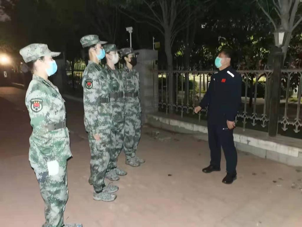 5月7日晚,校长许二平对正在执行巡逻任务的仪仗队员进行了亲切的慰问,现场听取值执勤班长的工作汇报,许二平对仪仗队员认真的工作态度、良好的组织纪律性、高度的责任感给予了充分肯定和表扬,并亲切的叮嘱同学们在执行巡逻任务中,一定要做好个人防护、注意工作方法和安全。现场全体队员表示,一定坚守岗位,文明执纪,坚决阻断疫情进入校园,用自已的实际行动为学校的疫情防控工作做出应有的贡献。