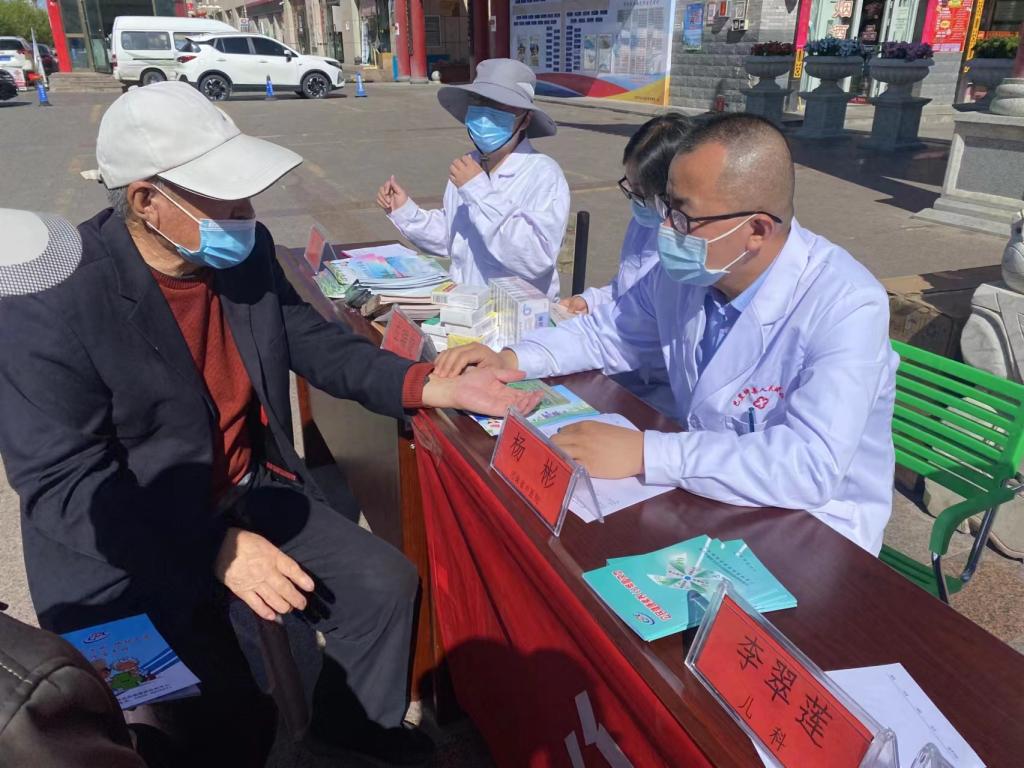 本网讯(文/李东东 杨彬)五一长假后,为更好地宣传中医药治病防病知识,提高当地居民的健康素养,2022年5月7日上午,在巴里坤县人民医院的统一安排下,二附院援疆专家杨彬、左瑞婷、李东东与医院中医科、内科、外科等科室10余名医生一起开展了大型义诊宣传活动。