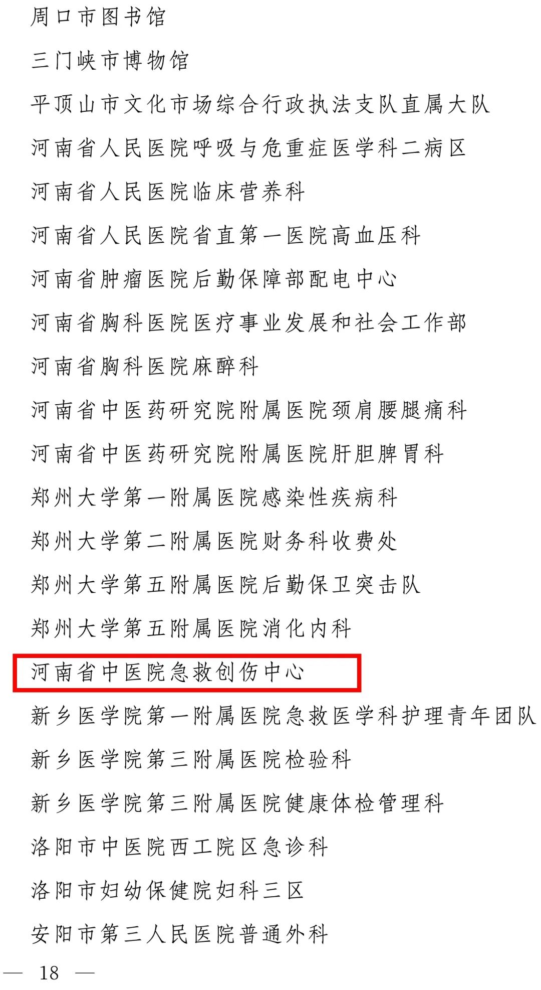 二附院急救创伤中心获评2019-2020年度河南省青年文明号