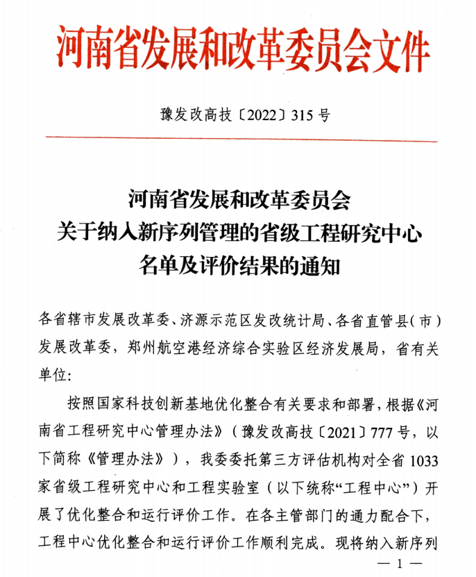 本网讯(文/张俊霞)近日,爱体育网页版收到《河南省发展和改革委员会关于纳入新序列管理的省级工程研究中心名单及评价结果的通知》,爱体育网页版14个河南省工程研究中心纳入新序列管理。其中爱体育网页版第一附属医院河南省儿童肾脏病AI病理及中医大数据工程研究中心建设评价优秀。