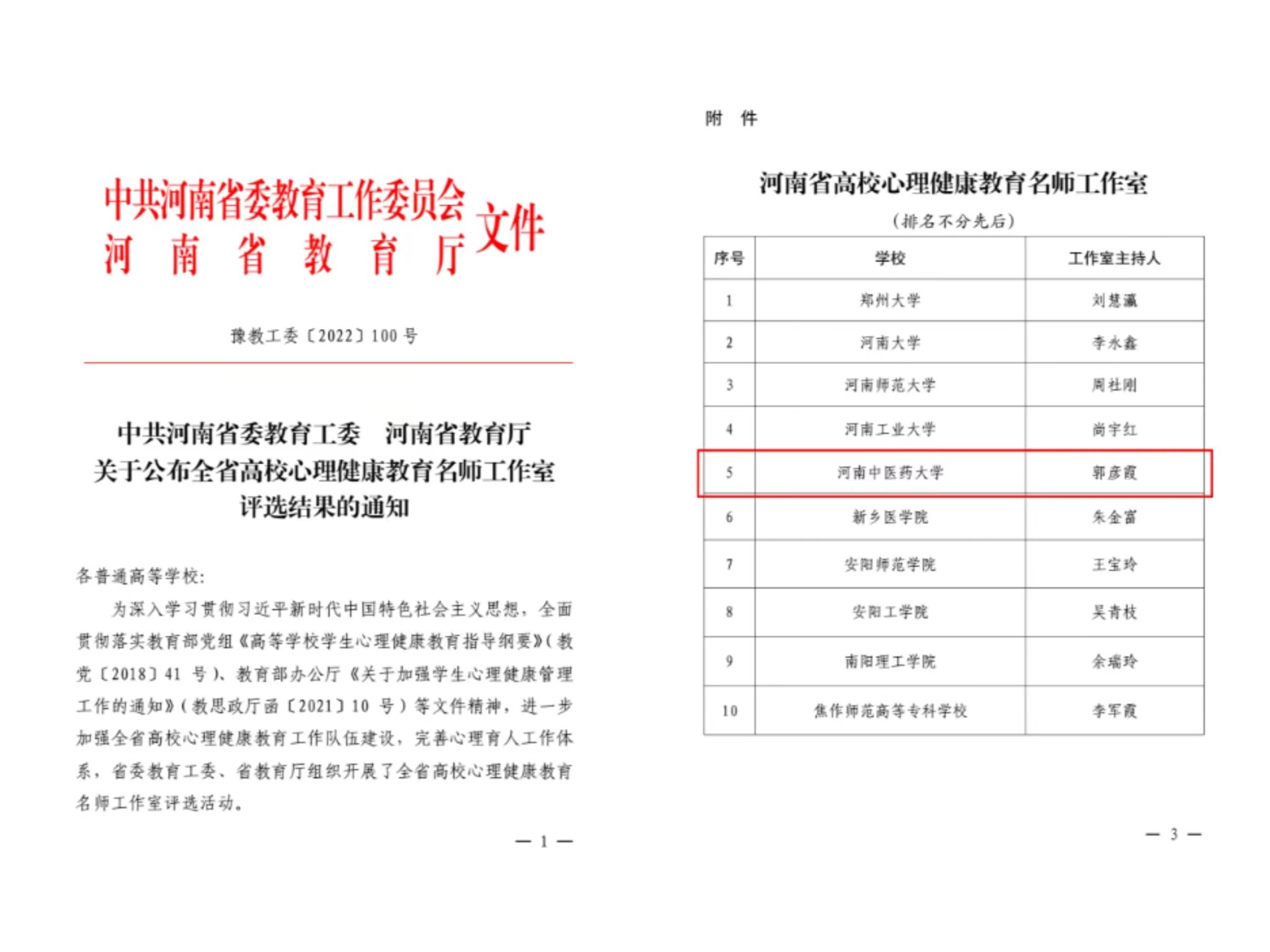 本网讯(文/图 张红坡)在河南省委教育工委、省教育厅举办的全省高校心理健康教育名师工作室评选中,爱体育网页版郭彦霞副教授主持的工作室成功入选。